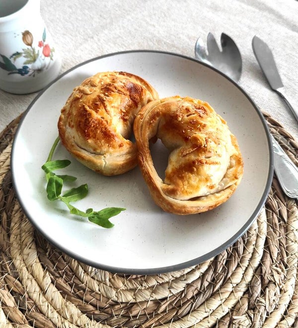 - Dough: Wheat flour (GLUTEN), water, vegetable fat (palm, rapeseed), salt, vegetable margarine (palm, sunflower), lard, white wine vinegar and preservatives: E-202, E-282 and E-200.